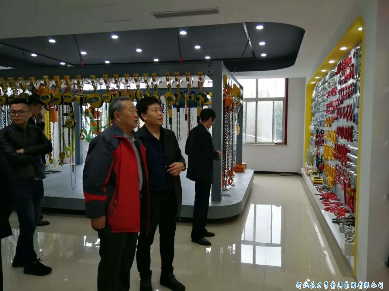 辰力集團總經理蘇總給重型工業協會葫蘆分會張理事長,新鄉紐科倫龍總介紹公司產品。